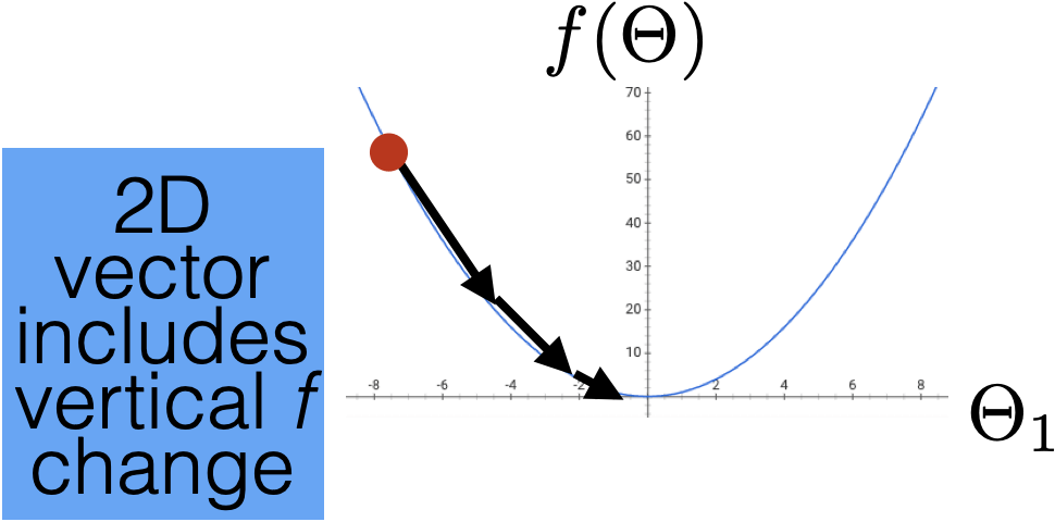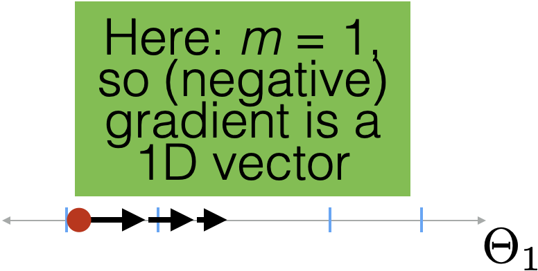 Introduce the idea of gradient descent in 1D: only two directions! But magnitude of step is important.