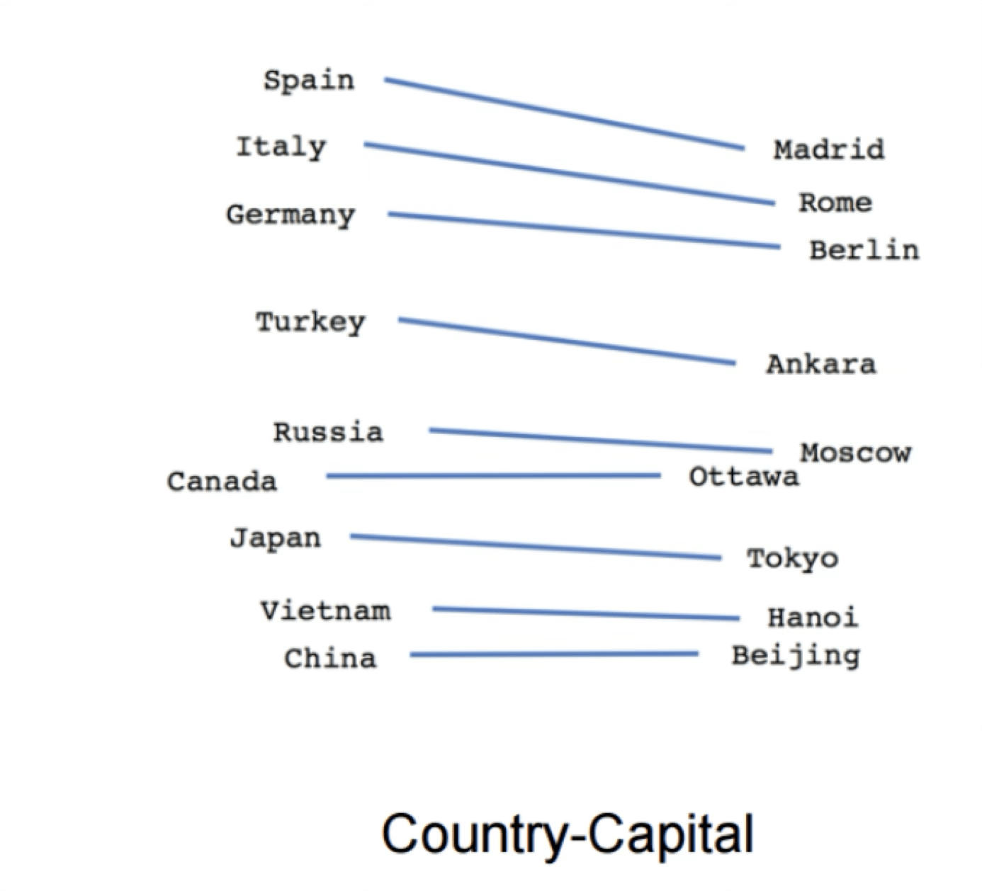 X = Vector(“Paris”) – vector(“France”) + vector(“Italy”) \(\approx\) vector("Rome")