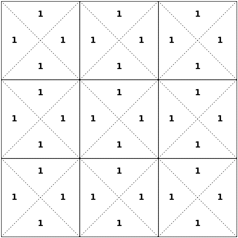 \(\mathrm{T}\left(9, \rightarrow, 9\right) = 1\)