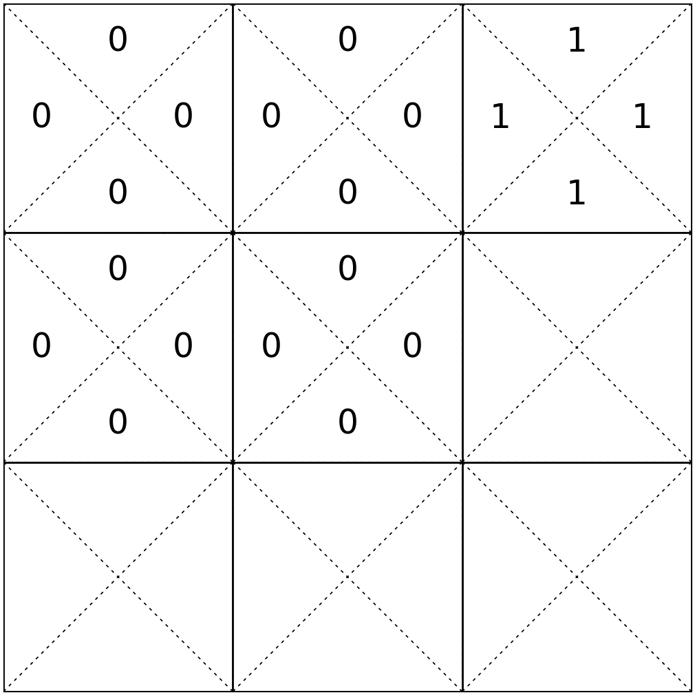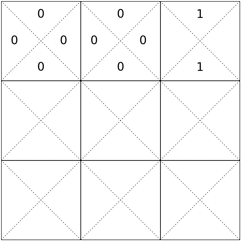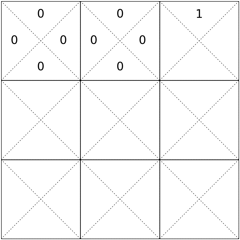 \(\mathrm{T}\left(9, \rightarrow, 9\right) = 1\)