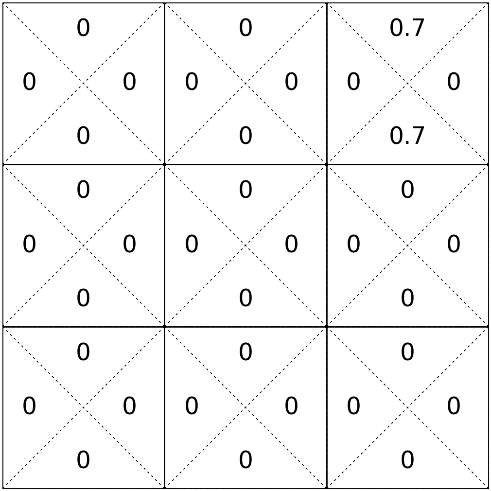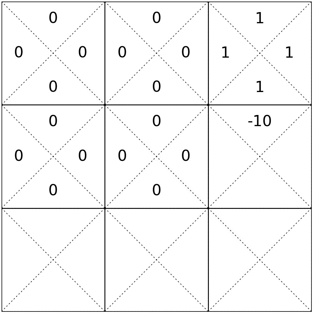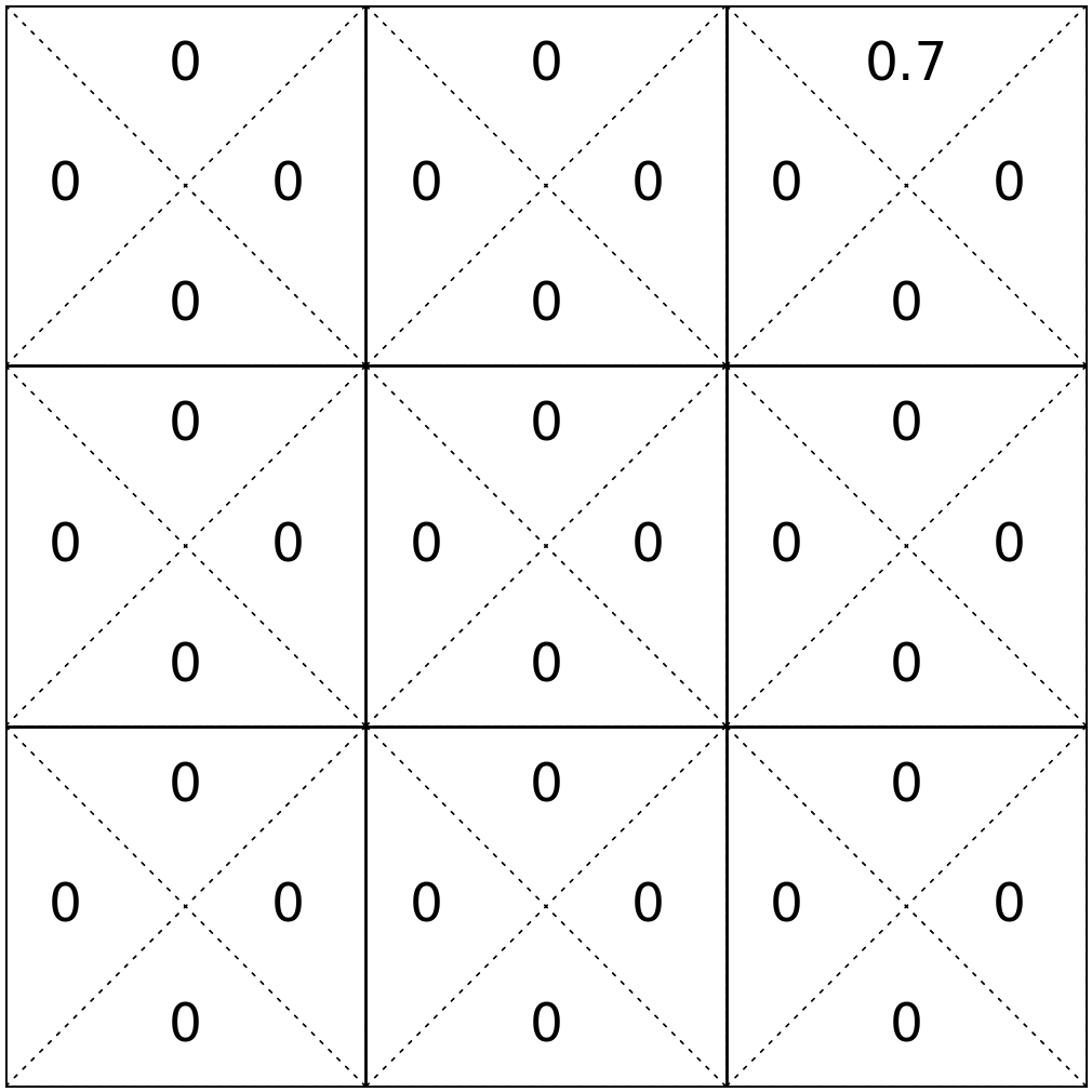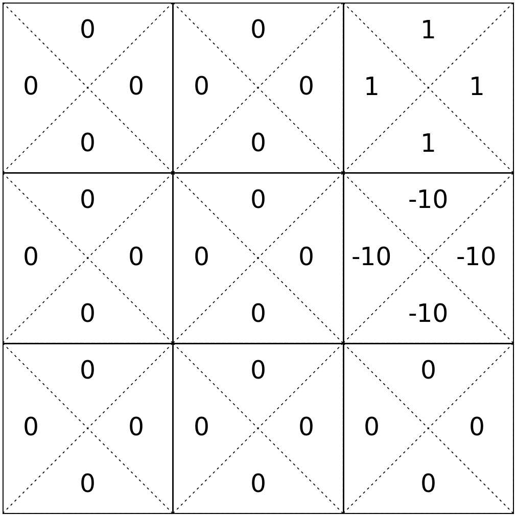 e.g. play the game 1000 times, count the # of times that (start in state 6, take \(\uparrow\) action, end in state 2), then, roughly, \(\mathrm{T}(6,\uparrow, 2 ) = (\text{that count}/1000) \)