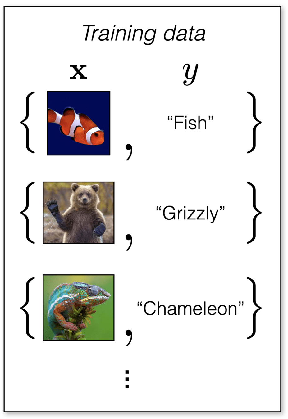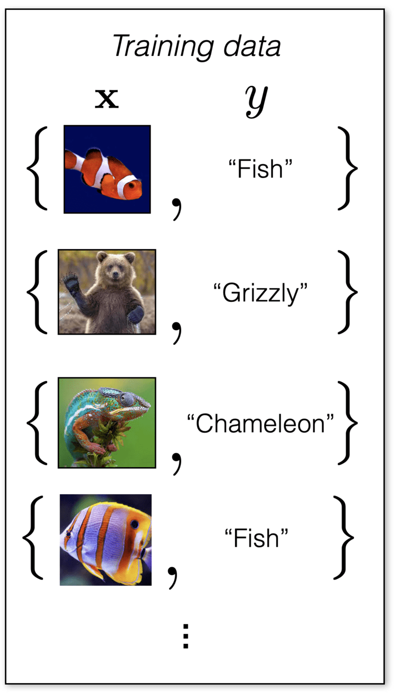 - Classification: a supervised learning problem, similar to regression, but where the output/label is in a discrete set.