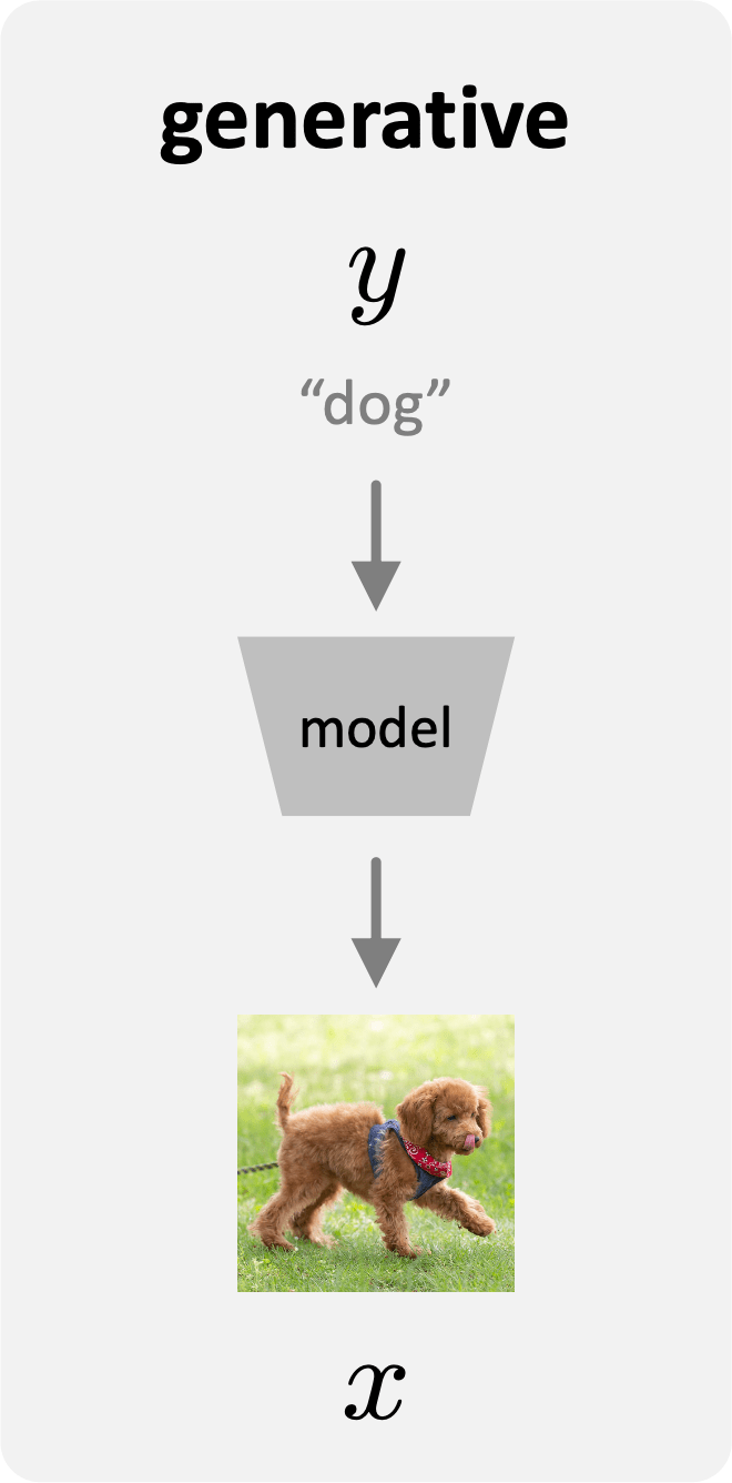 In generative model, modeling \(p(x \mid y)\) typically means, for the given conditioning \(y\), synthesize / sample data \(x\) following \(p(x \mid y)\)