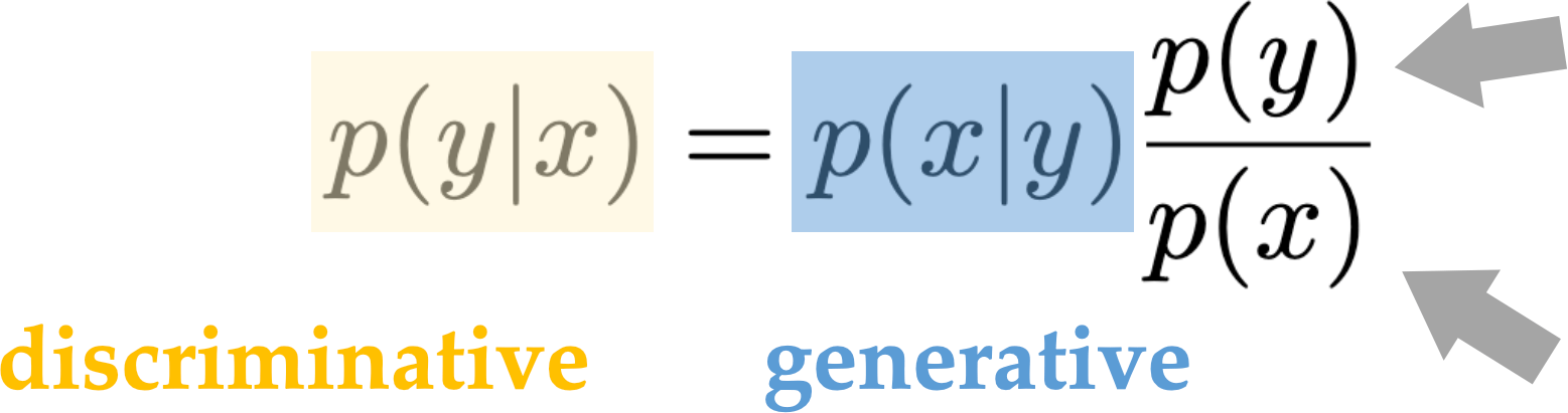In discriminative model, modeling \(p(y \mid x)\) typically means, for any given data \(x\), find the label \(y\) that maximizes \(p(y \mid x)\)
