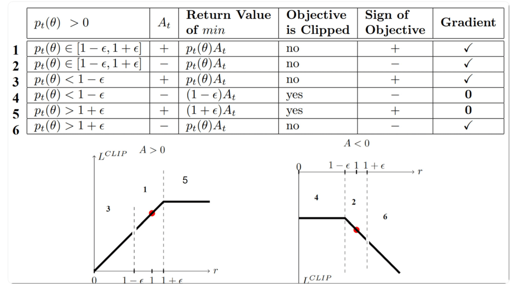 - The main loss \(L_t(\theta)=\min \left(r_t(\theta) \hat{A}_t, \operatorname{clip}\left(r_t(\theta)\right), 1-\epsilon, 1+\epsilon\right) \hat{A}_t\)