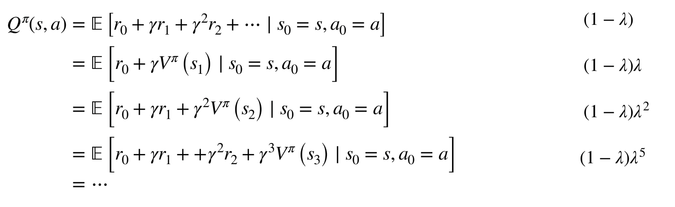 - \(\hat{Q}:\) lambda exponentially weighted average of all the above