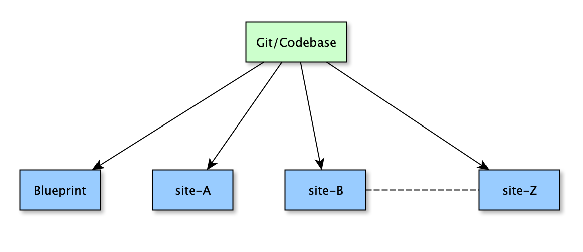 Multiple sites are run from same codebase (think Drupal multisite), with few variations present between each sites.
