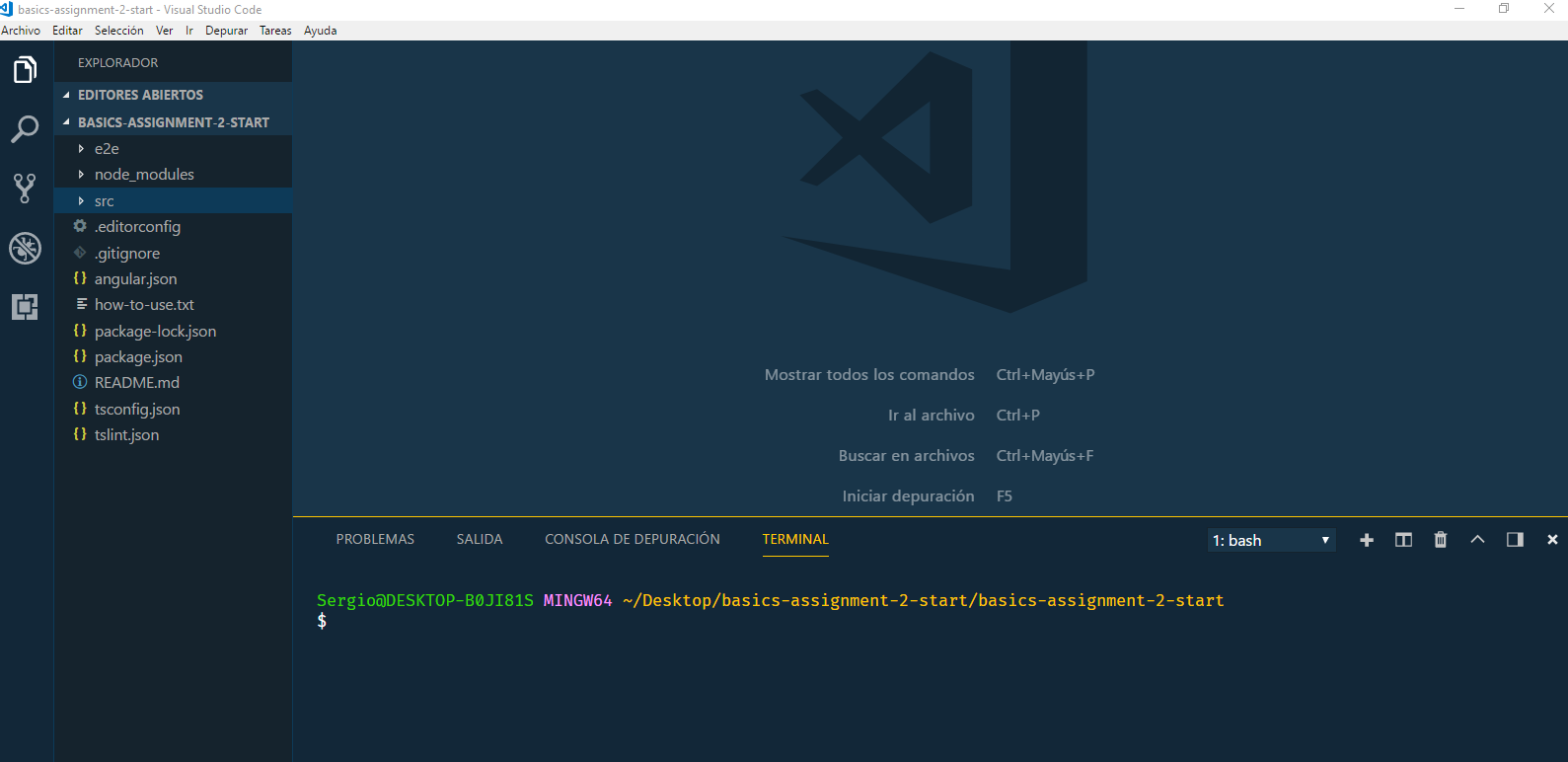 Por defecto el Visual Code nos ubica dentro de la carpeta de la app. Si no fuese así, ubicarse dentro de la carpeta a través de la Terminal.