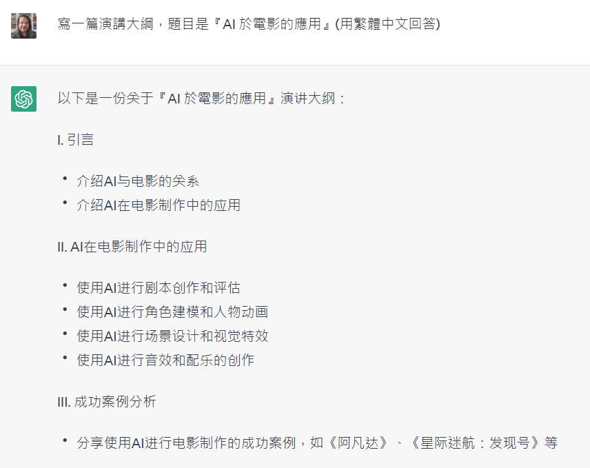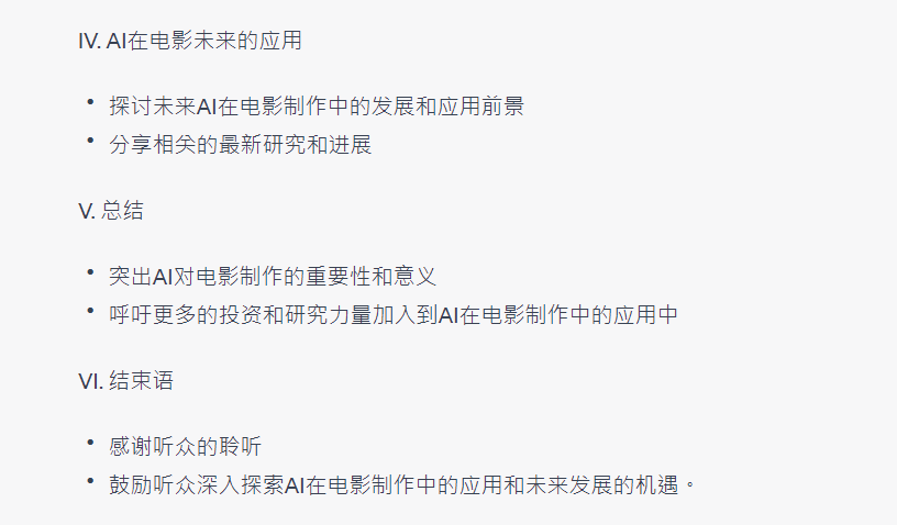 寫一篇演講大綱,題目是『AI 於電影的應用』