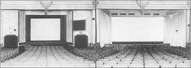 1950 年代初期,一個小劇院改成了 CinemaScope。通常與必要設備無關的成本包括拆除前面幾排座椅並將其重新安置到兩側、對加熱和冷卻系統進行重大改造以及拆除舞台周圍的牆壁。屏幕左側的出口似乎也已被消除。請注意,CinemaScope 屏幕不僅比原始屏幕更寬,而且明顯更高。