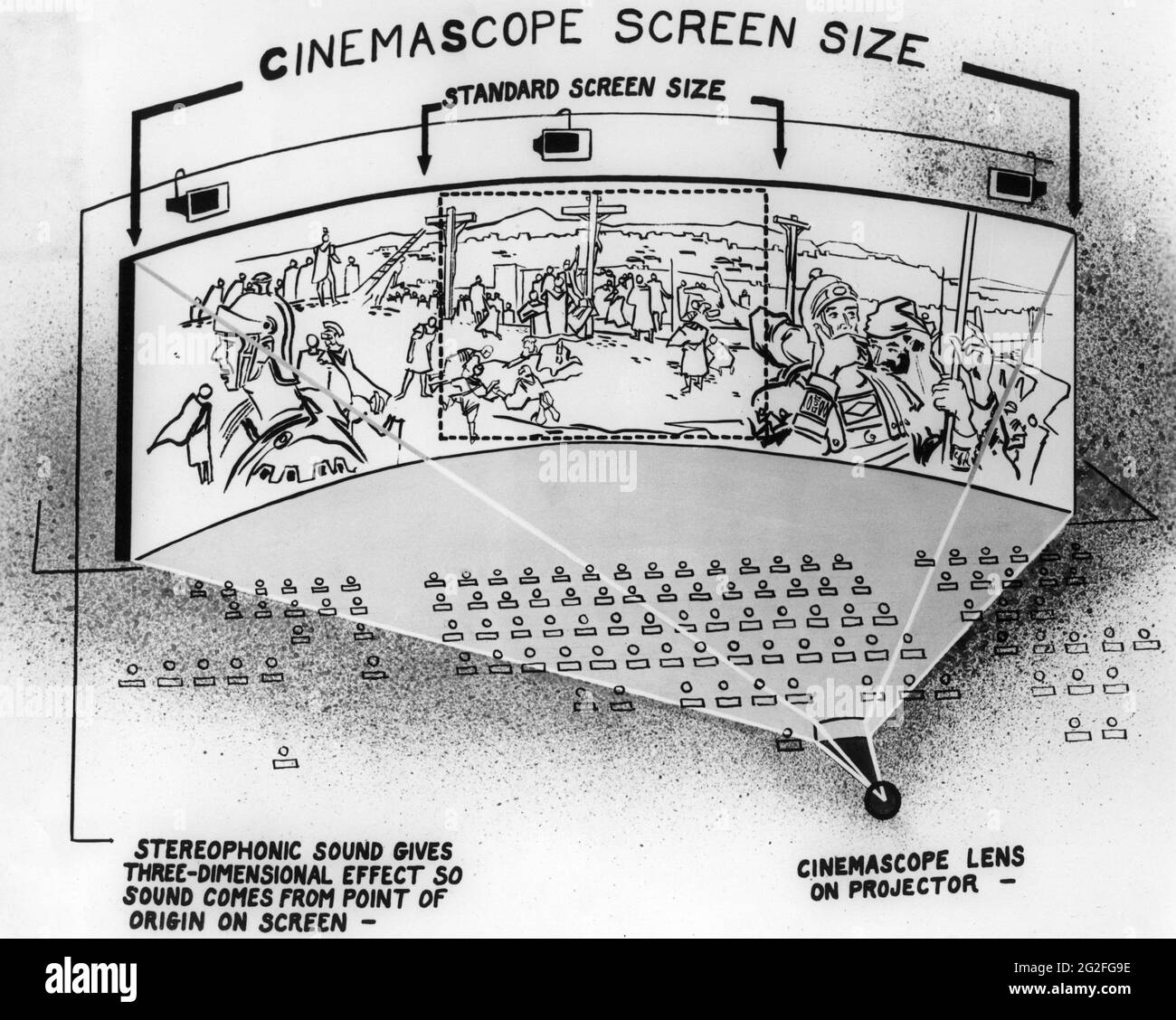 1952年,用三台攝像機和三台放映機放映寬銀幕影像的《This is Cineram》雖然在有限的影院上映,卻在全國風靡一時。