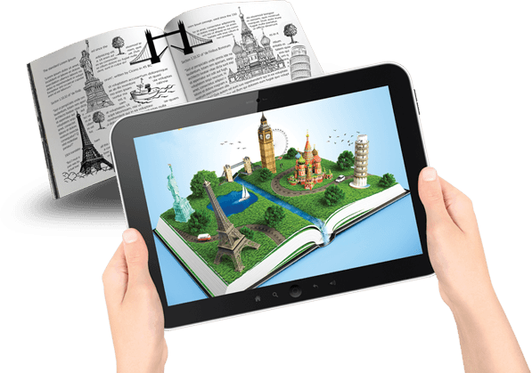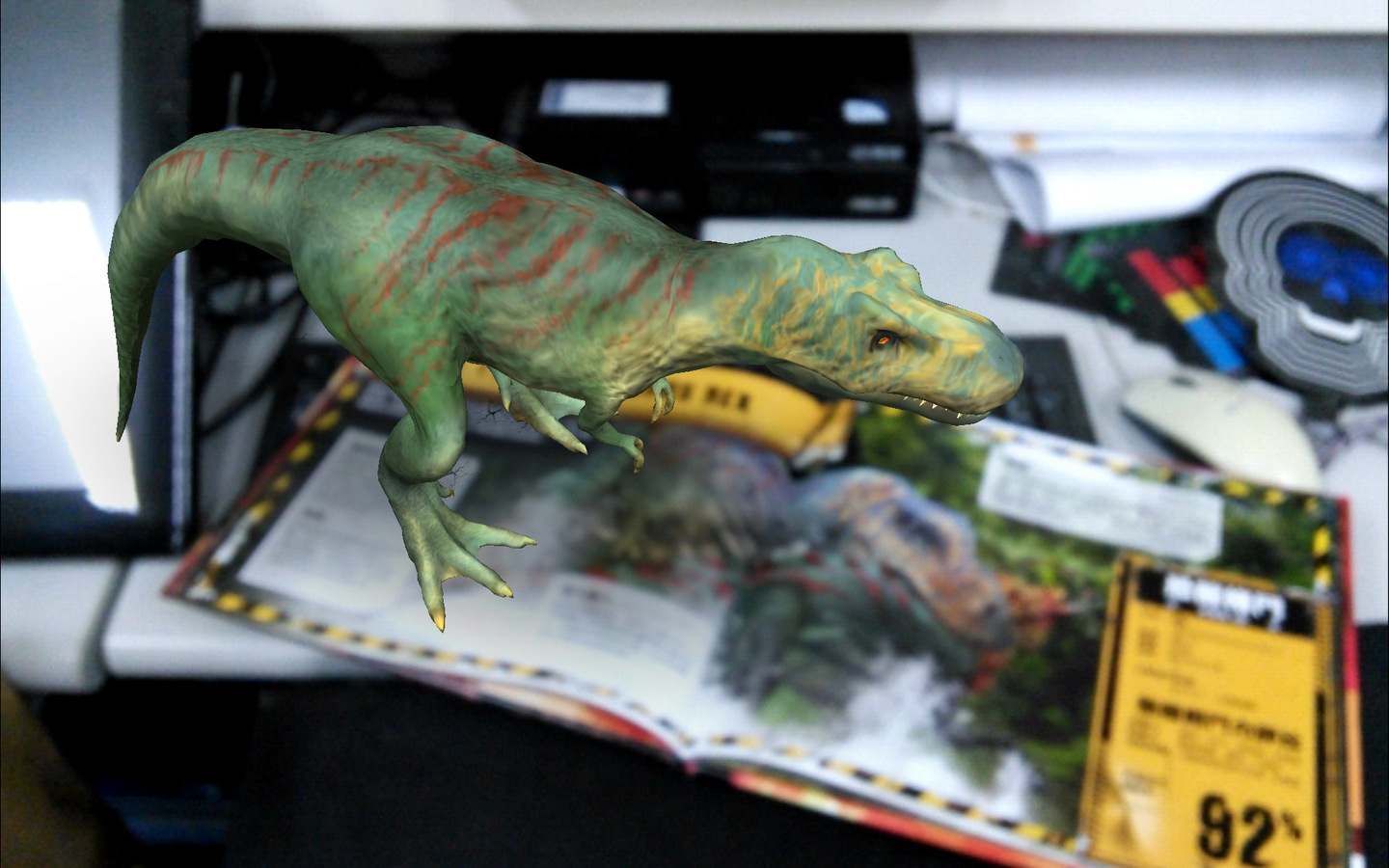 相機讀取 特製的圖卡後,影像 呈現在平板上,與現實情景重疊