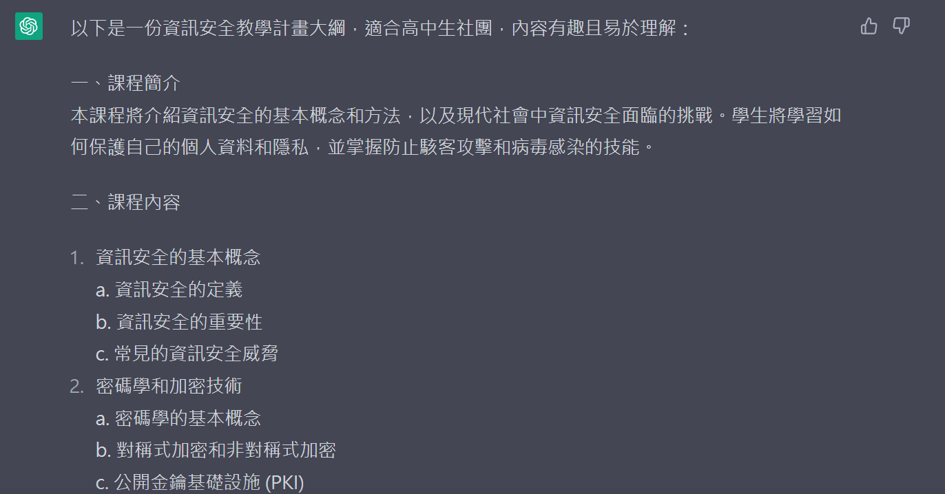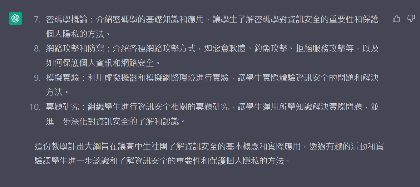 請幫我產生一份教學計畫大綱,領域為資訊安全,內容適於高中生社團並且為較有趣的題材