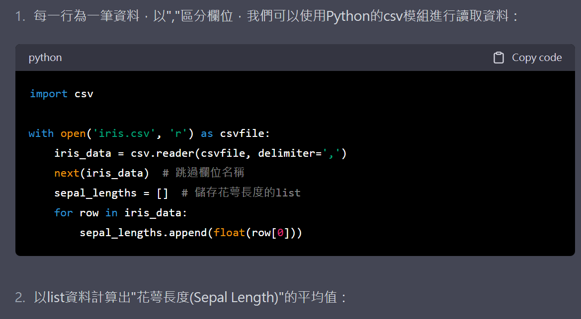 1. 以上資料集每一行為一筆資料,以","區分欄位