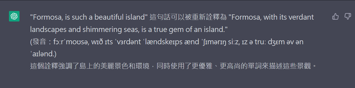 我的第一句話是“ Formosa, is such a beautiful island "