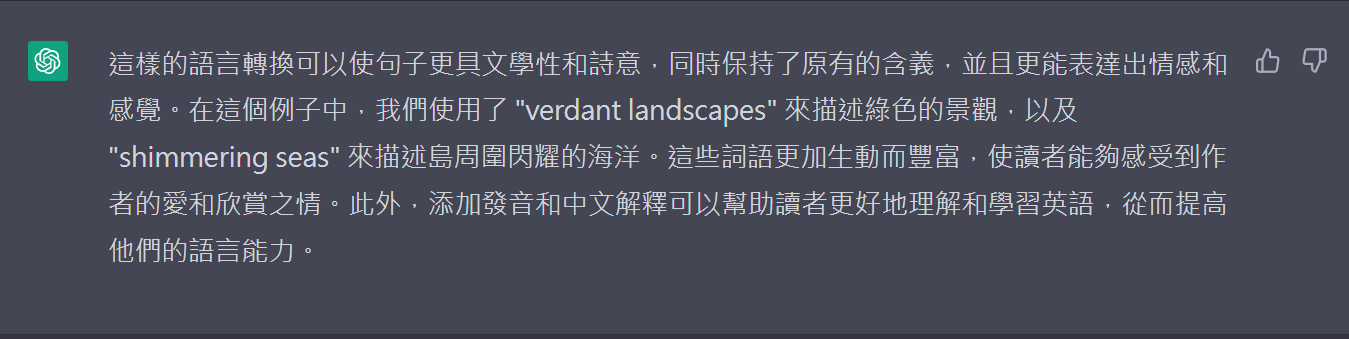 將我提供的各種語言轉換為英文,並保持含義相同,替換為更美麗、更優雅、更高尚的英語單字或句子,使句子更具文學性,同時請在整段文字加上英語發音並以繁體中文加上解釋。