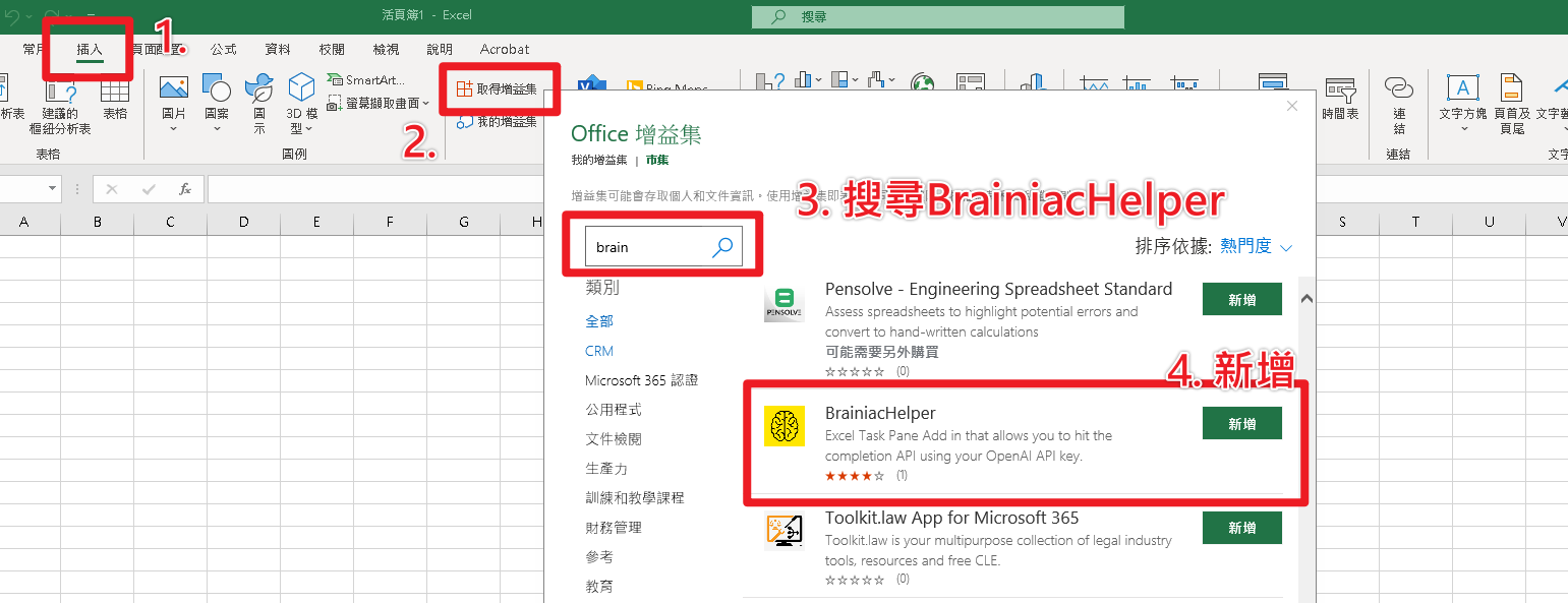 充當Excel工作表