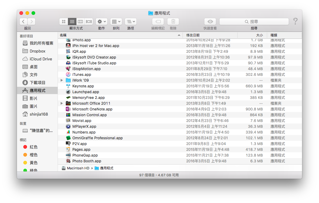 也可從 Finder 中查看所有的應用程式