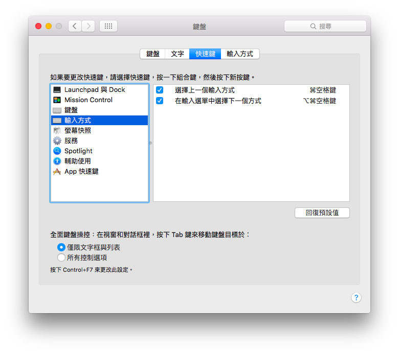 | Command-Space | 切換輸入法 |