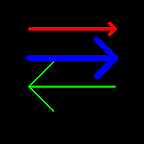 cv2.arrowedLine(img, (400,300), (100,300), (0,255,0), (5), 8,0,0.4)
