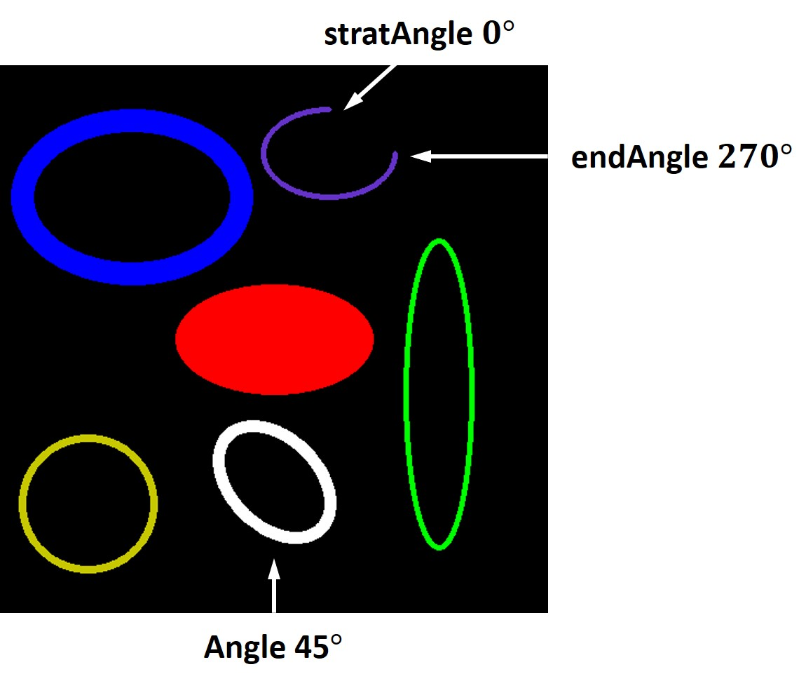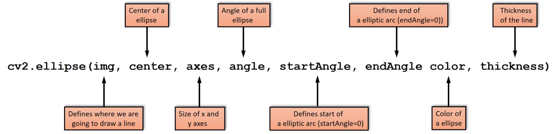 cv2.ellipse(img, (250,380), (60,40), 45,0,360, (255,255,255), (10))