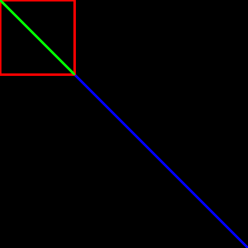 ret, p1, p2 = cv2.clipLine((0, 0, 150, 150), (0, 0), (500, 500))