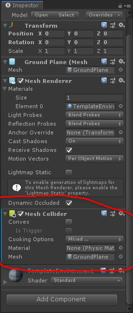 we add mesh collider so unity use the shape of our oubject as a collider.