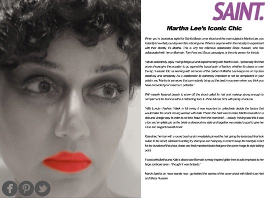 My second ancillary task was to create a Hyperlinked web page. This i found was one of the most difficult due to many aspects. Firstly adapting to dreamweaver and learning how to create a webpage was something i found especially difficult. When i did this i think had to export the html into Wordpress using a host server. The visuals of my home page i found were both typical and contrasting to the typical conventions used in my researched hyperlinked pages from several different fashion based pages such as Vogue and net-a-porter. The common theme was to create a Logo and Tabs followed with lots of different links with articles. Instead of doing this so that i could follow my house style of simplicity well executed i decided to use one main image where i could convey the theme of the 'special issue'. In doing so i increased the brand awareness of my products through creating importance of every piece. The front cover was important to attract the consumer along with the double page spread which gave slightly more detail, then moving to the web link where the full article would be seen. Considering all of the products i felt that the hyperlinked web pages complimented the double page spread. By putting myself into the ideal consumers shoes i felt there is a distinct connection within all of my products with a regional specification with each showing that 'Martha-Lee' is a dominant London celebrity.
