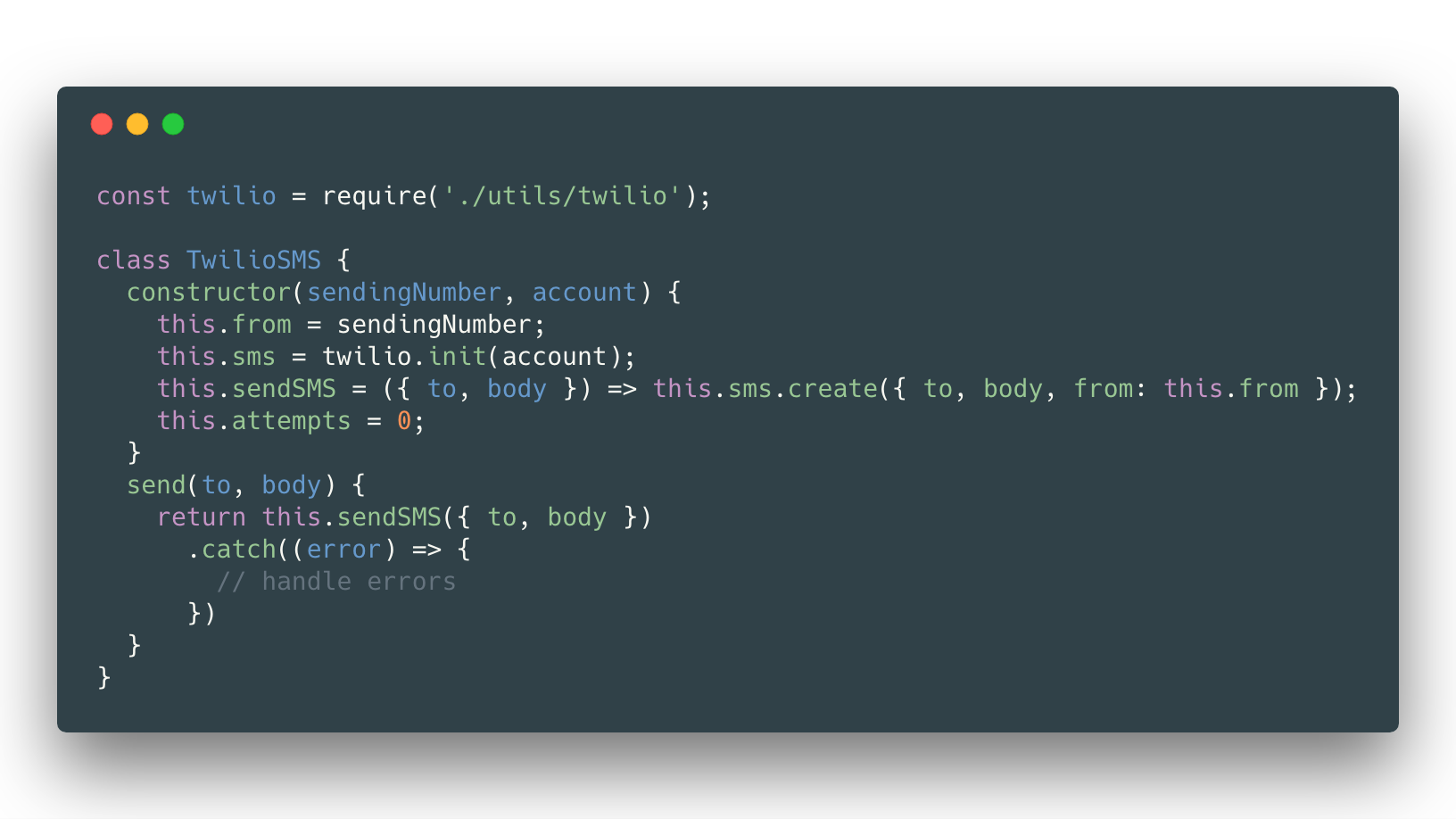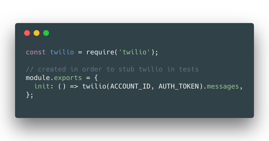 `twilio(ID, TOKEN).messages.create` is hard to test. Wrap it and use a spy on the sender.