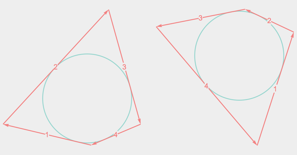 The polygon is closed \(\Leftrightarrow e_1 + \ldots + e_n = 0\)