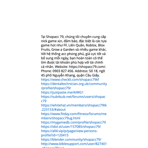 Website: https://shopacc79.com/https://shopacc79.com/ Tại Shopacc79, chúng tôi chuyên cung cấp tài khoản game chất lượng cao, đặc biệt là các tựa game hot như Free Fire, Liên Quân Mobile, Roblox, Blox Fruits, Grow a Garden và nhiều game khác. Với hệ thống acc phong phú,