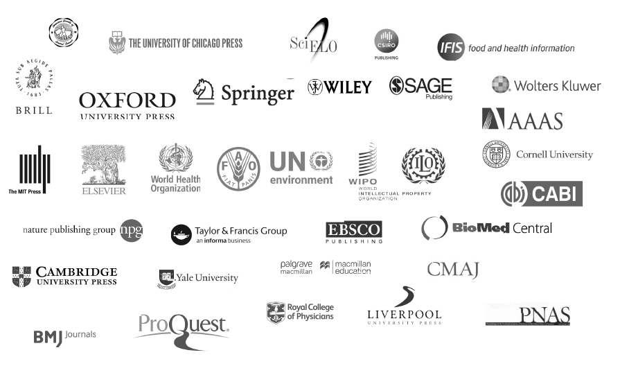 وذلك بالشراكة مع منظمات في مجالات التواصل الأكاديمي، والتكنولوجيا، والتنمية الدولية، مثل: منظمة الصحة العالمية، منظمة الأغذية والزراعة، برنامج الأمم المتحدة للبيئة، المنظمة العالمية للملكية الفكرية، منظمة العمل الدولية، جامعتي كورنيل وييل، الرابطة الدولية للناشرين العلميين، التقنيين والطبيين، وأكثر من 200 ناشر دولي.