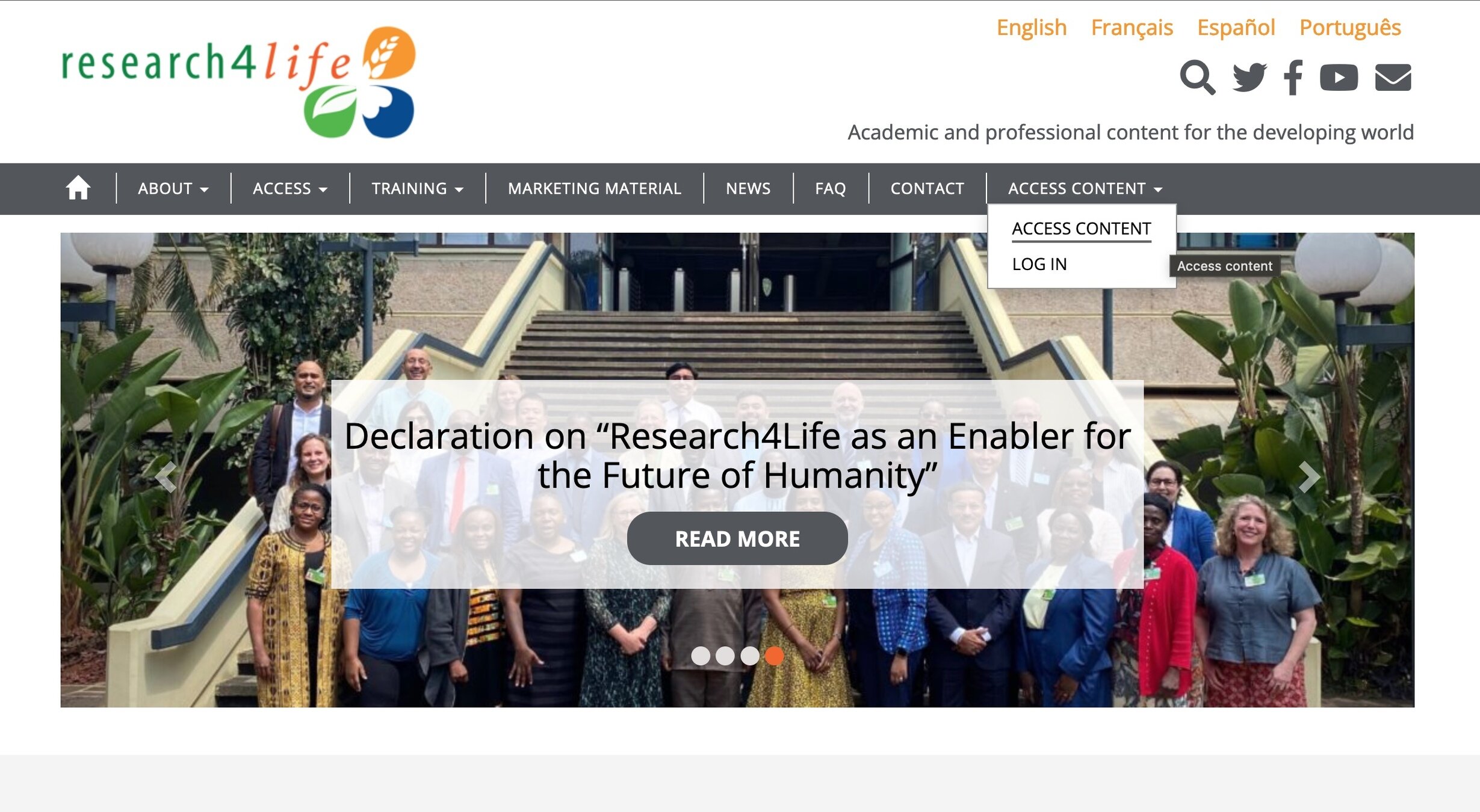 يقدم برنامج البحوث من أجل الحياة للمؤسسات في الدول ذات الدخل المنخفض والمتوسط إمكانية الوصول عبر الإنترنت إلى محتوى أكاديمي ومهني معتمد لتحسين التعليم، البحوث، وصنع السياسات في مجالات الصحة، الزراعة، البيئة، والعلوم الحياتية، الطبيعية، والاجتماعية.