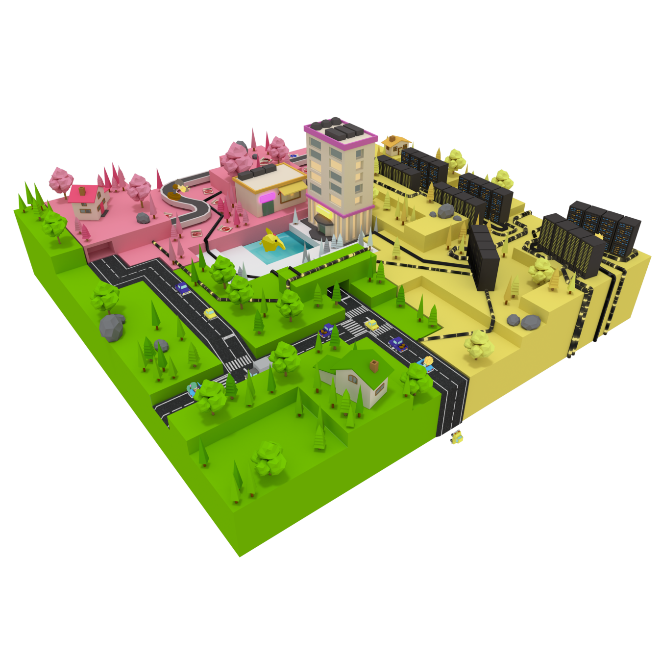 要素が多くポリゴン数、テクスチャサイズ&枚数が多くなりそうだったので、なるべくローポリゴン&テクスチャベイクすることで不可を減らした。質感もマットな可愛い感じに。