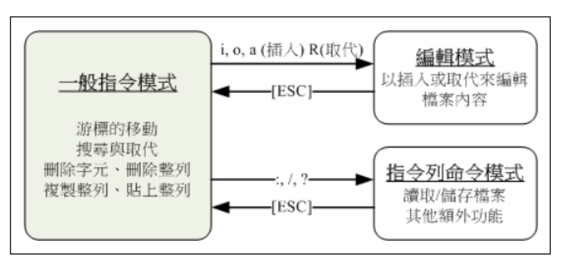 跳出編輯模式 : 按下esc鍵