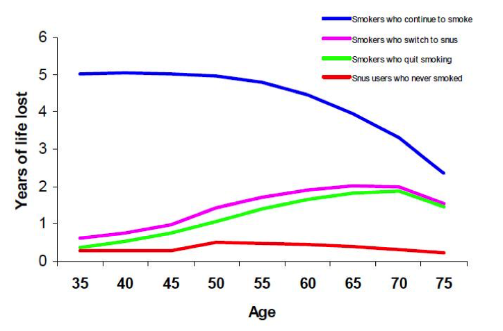 Langsigtede effekter af snus/skrå