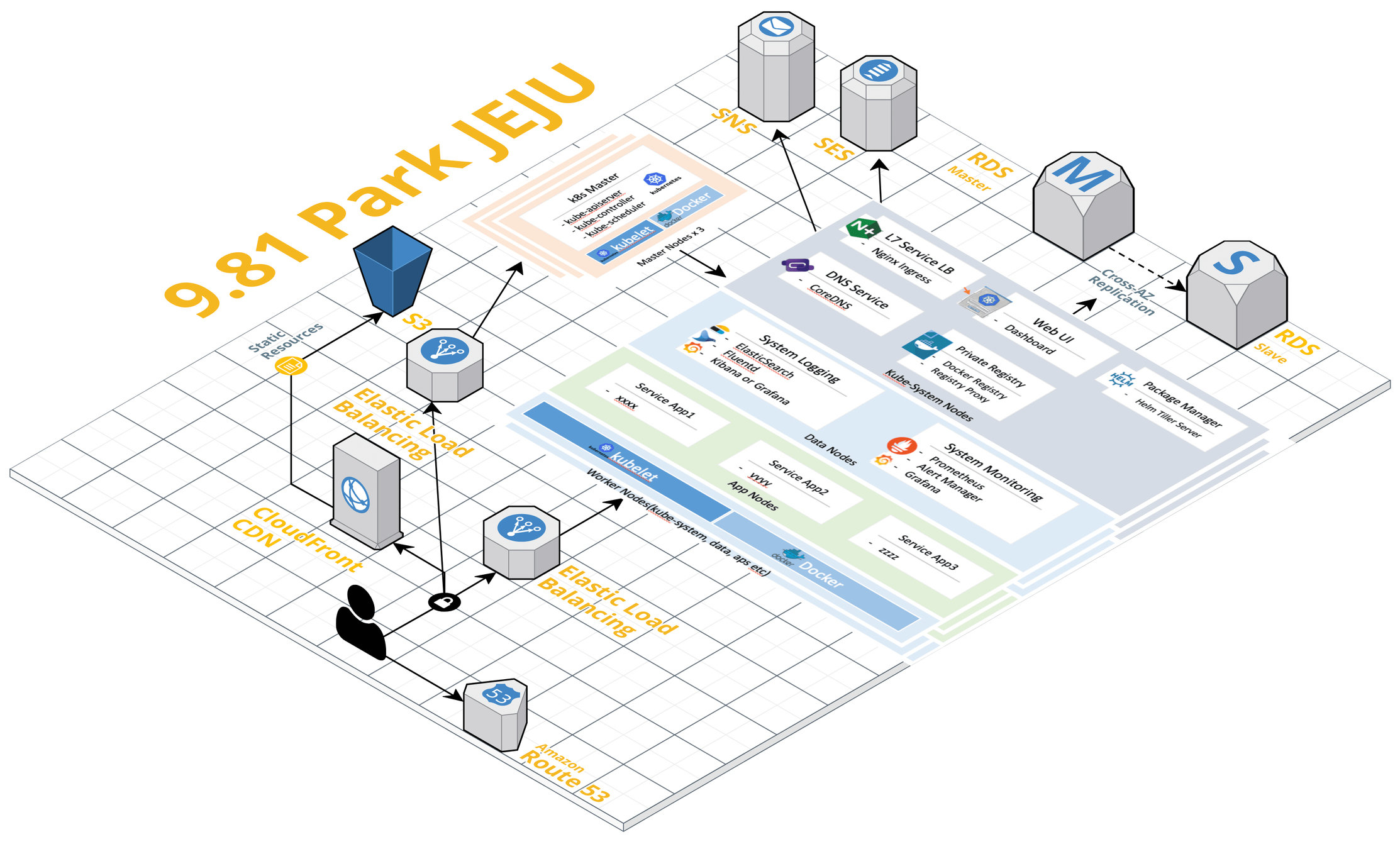 세계에서 가장 인기 있는 서비스 중 하나인 9.81park는 전 세계의 AWS에서 게임 서버, 백엔드 서비스, 데이터베이스, 웹사이트 및 분석 파이프라인 등의 다양한 AWS 서비스를 사용하여 평상시의 10배 사용량을 견딜 수 있게 시스템이 설계되었다.