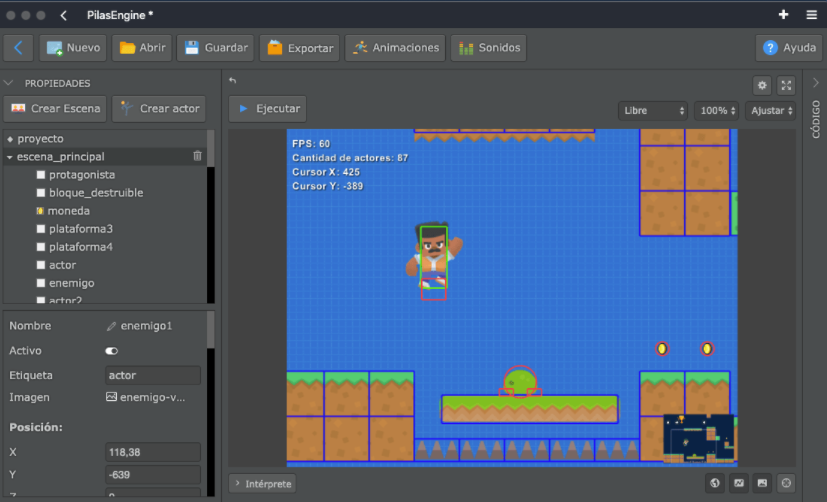 El motor de física seleccionado para pilas se llama Box2D, el mismo motor de física utilizado en el juego Angry Birds.