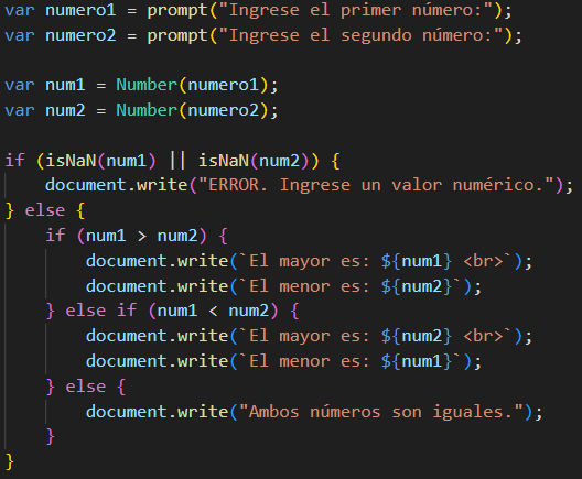 Pedir al usuario 2 números y mostrar el mayor, el menor y si son iguales.