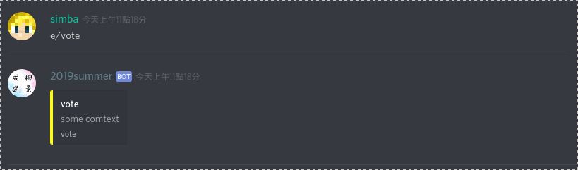 .setFooter('vote'); //設定頁尾