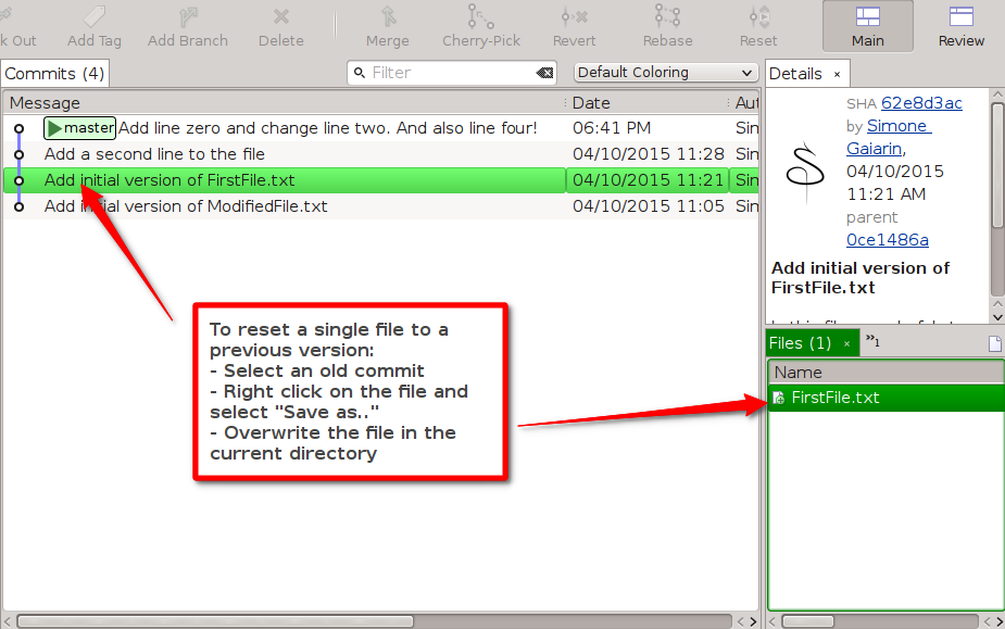 - When we want to retrieve a specific version of the project, we just copy to the tree structure corresponding to that version in the working directory