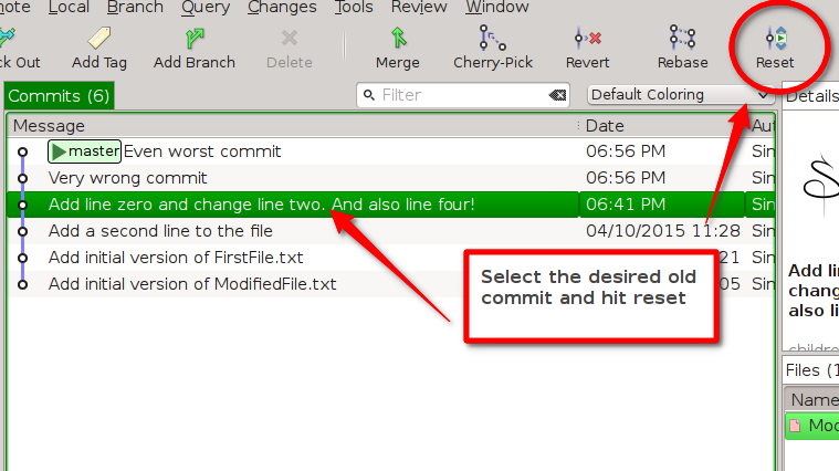 RESET THE WHOLE REPOSITORY TO A PREVIOUS STATE