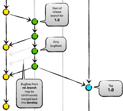 All features that are targeted for the release-to-be-built must be merged in to develop at this point in time
