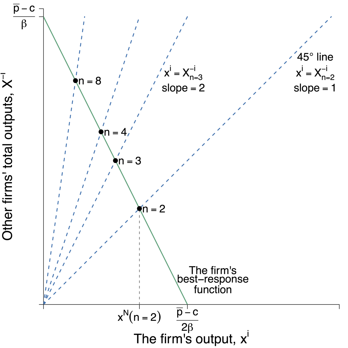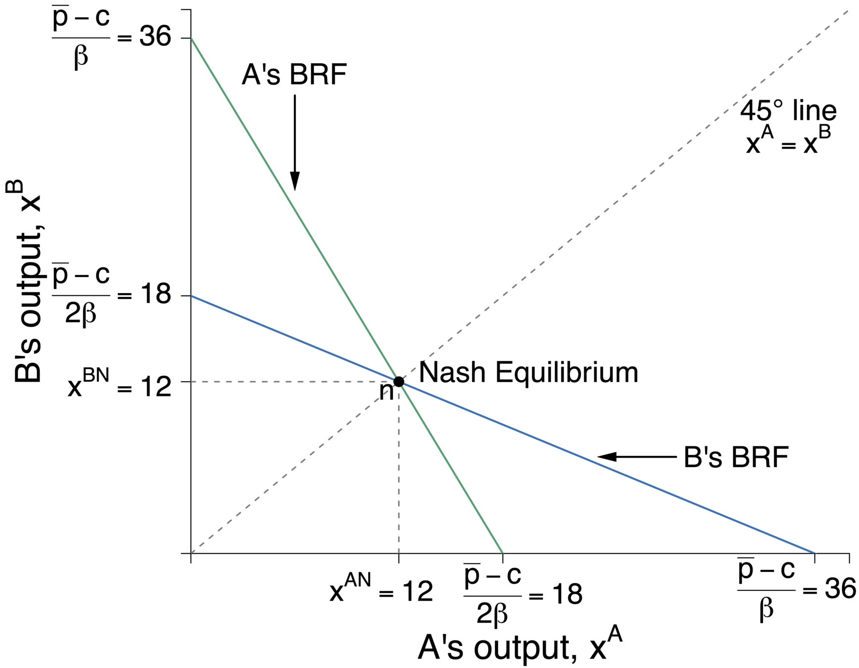 - Downward-sloping demand $$p(X) = \bar{p} - \beta X$$ Where $$X = x^A + x^B$$ for firms A and B.
