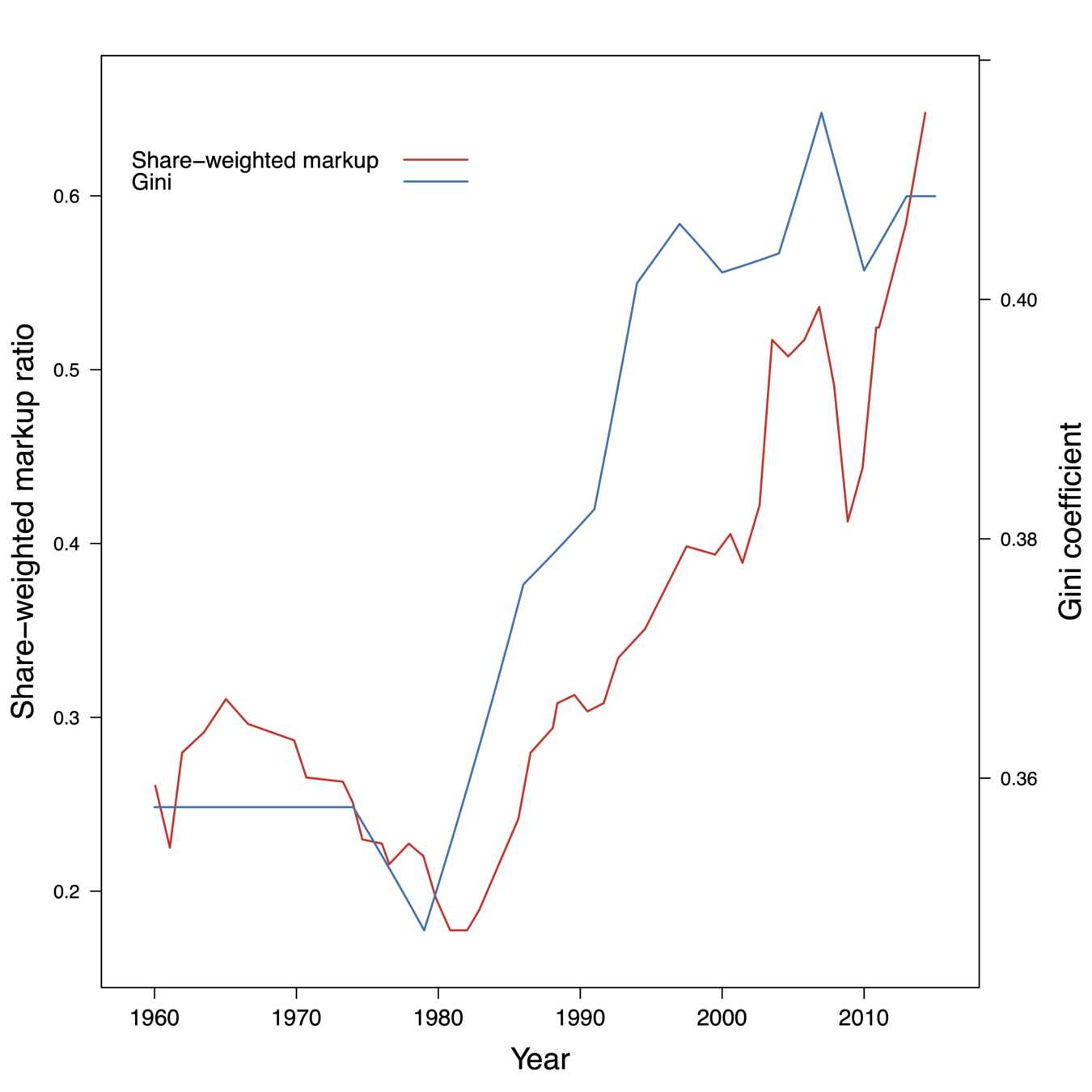 Wealth & income inequality, rising markups, increased profit shares, increased concentration...