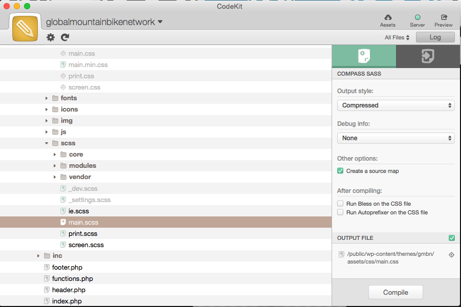 Compiles SASS