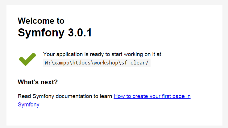Symfony installer will generate for us AppBundle, with default index action.