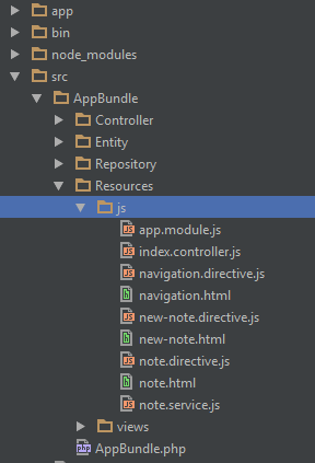 Now we should move our .js files to AppBundle.