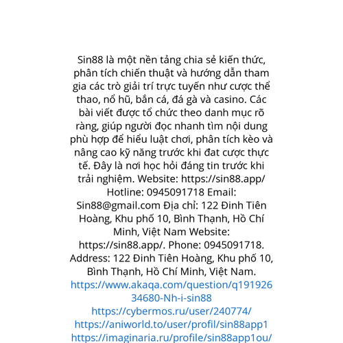 Website: https://sin88.app/. Sin88 là một nền tảng chia sẻ kiến thức, phân tích chiến thuật và hướng dẫn tham gia các trò giải trí trực tuyến như cược thể thao, nổ hũ, bắn cá, đá gà và casino. Các bài viết được tổ chức theo danh mục rõ ràng, giúp ngư