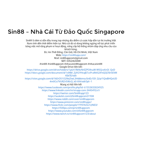 Sin88 là nhà cái hàng đầu thế giới đến từ đảo quốc Singapore. Thành lập từ năm 1999 với sự đầu tư từ Playtech, Sin88 đã thành công chinh phục nhiều game thủ! Website: https://sin88app.com/